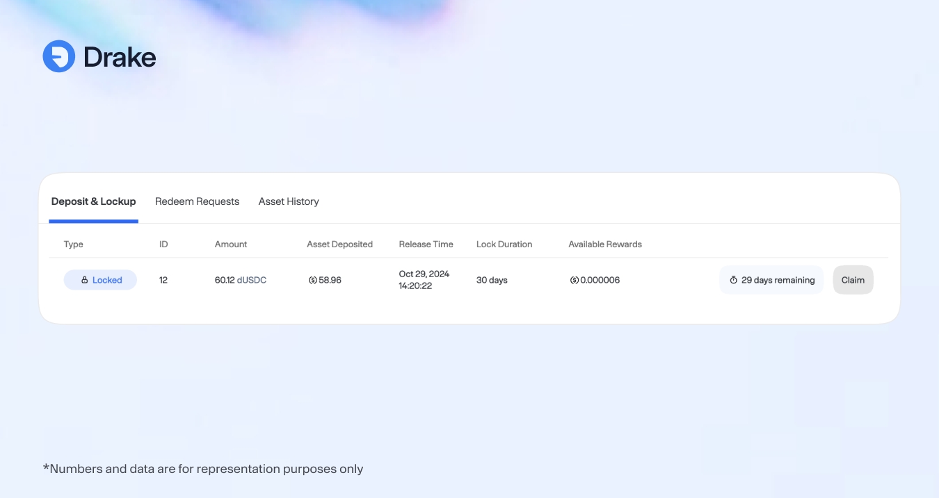 Drake vaults provide AMM liquidity through an ERC-4626 compliant structure. Vaults accept USDC deposits and issue dUSDC shares representing proportional ownership.